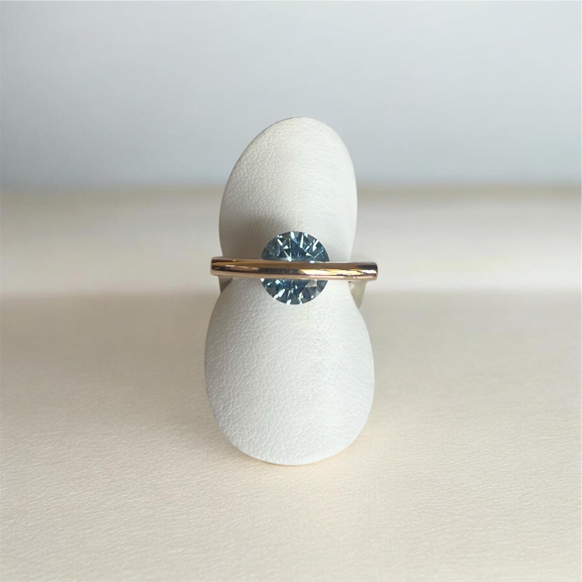 Sterling Silver and 14k Gold curved style ring with 9mm Blue Topaz size 61/4 by Tomasz Plodowski