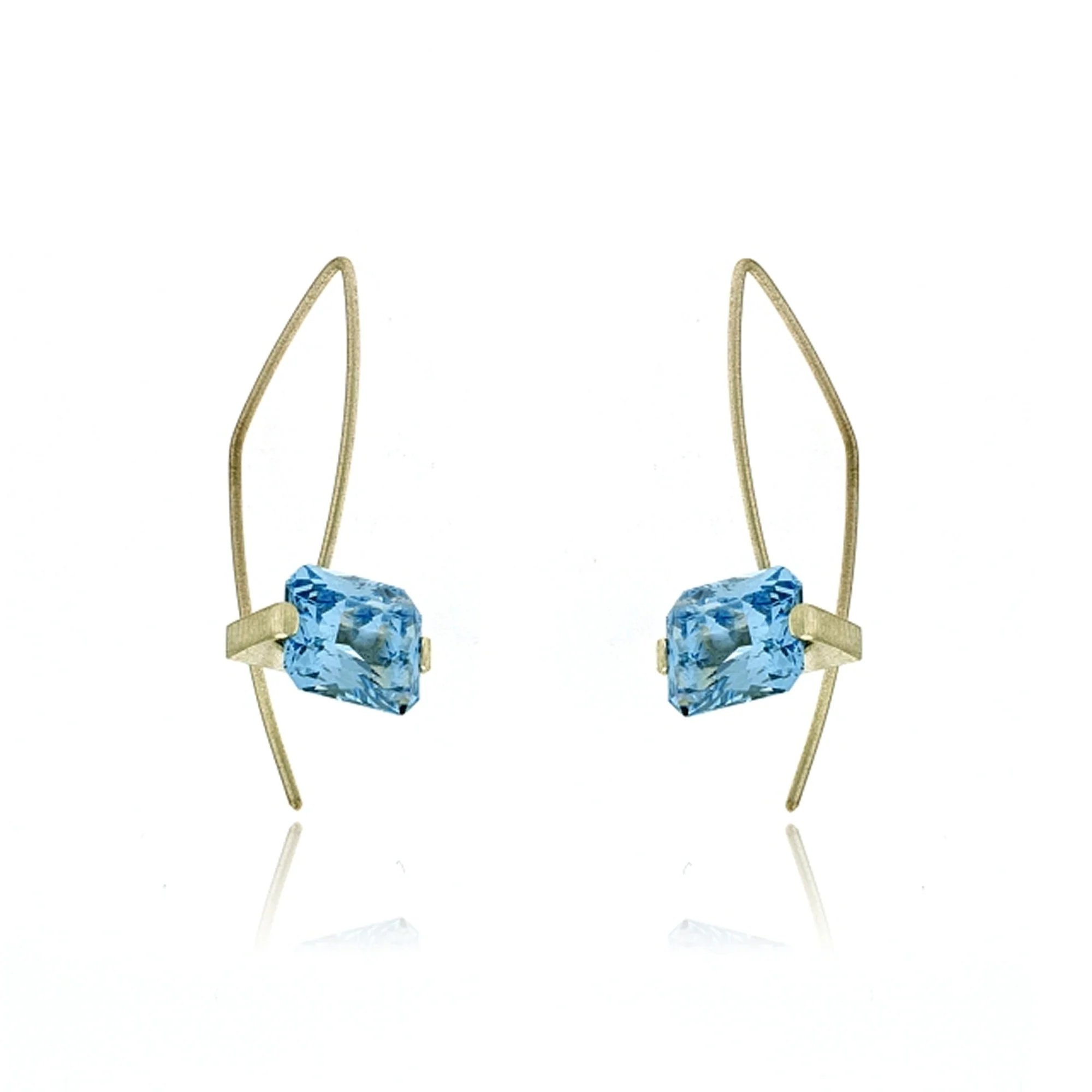 STERLING SILVER /AQUA SET HORIZONTALLY 8x10mm RECTANGULAR EARRINGS 1.5″ IN LENGTH