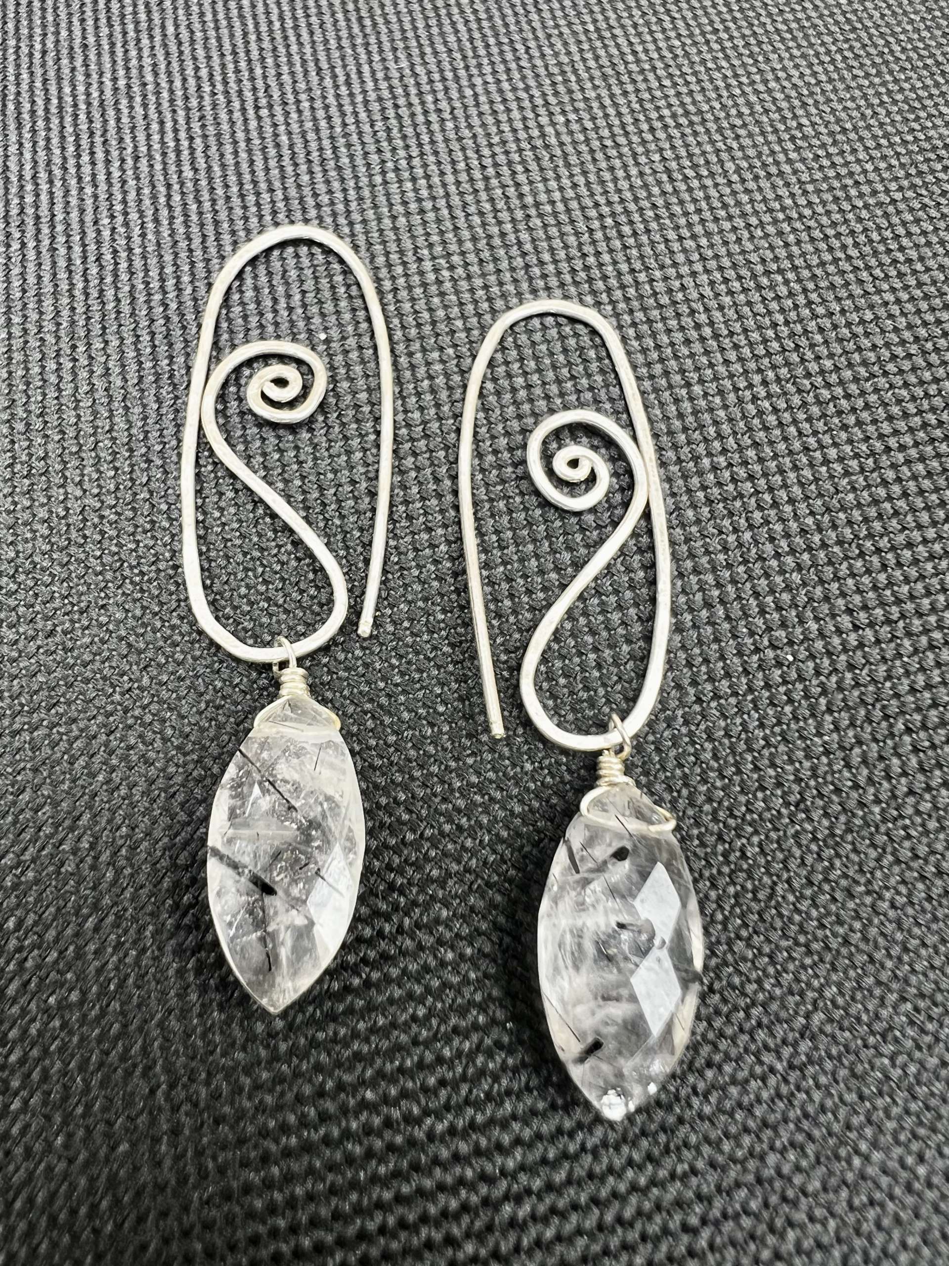 Sterling Silver handmade wire Earrings with Marquis shape Rutilated Quartz