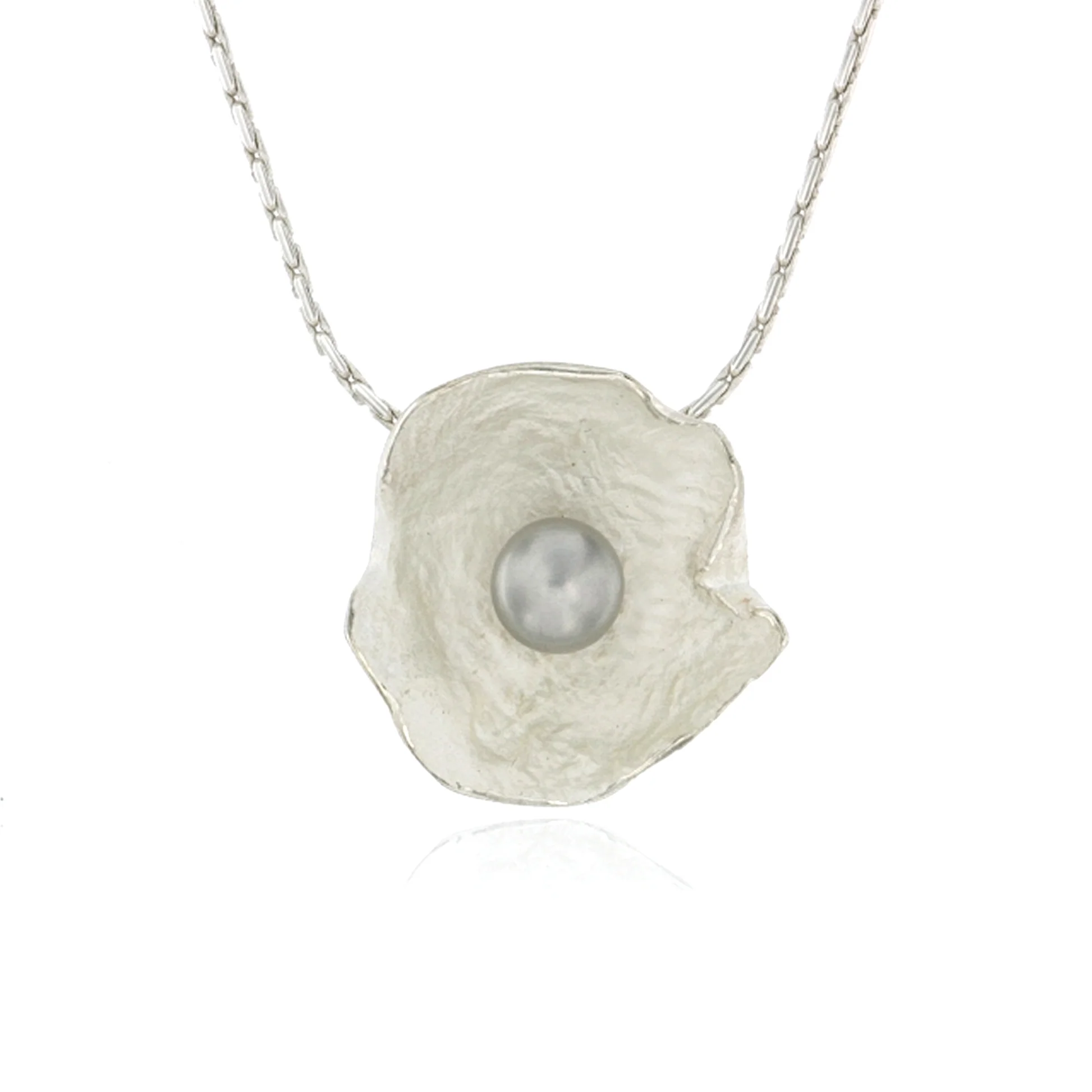 Sterling Silver Necklace with large Petal and Grey Freshwater Pearl 18″ last one in stock
