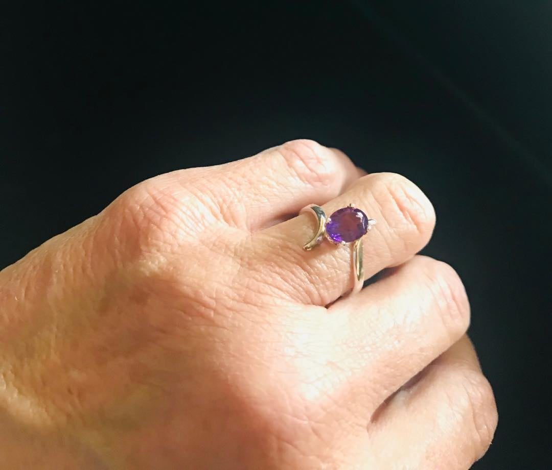 Sterling Silver Oval Amethyst Bypass ring SIZE 7