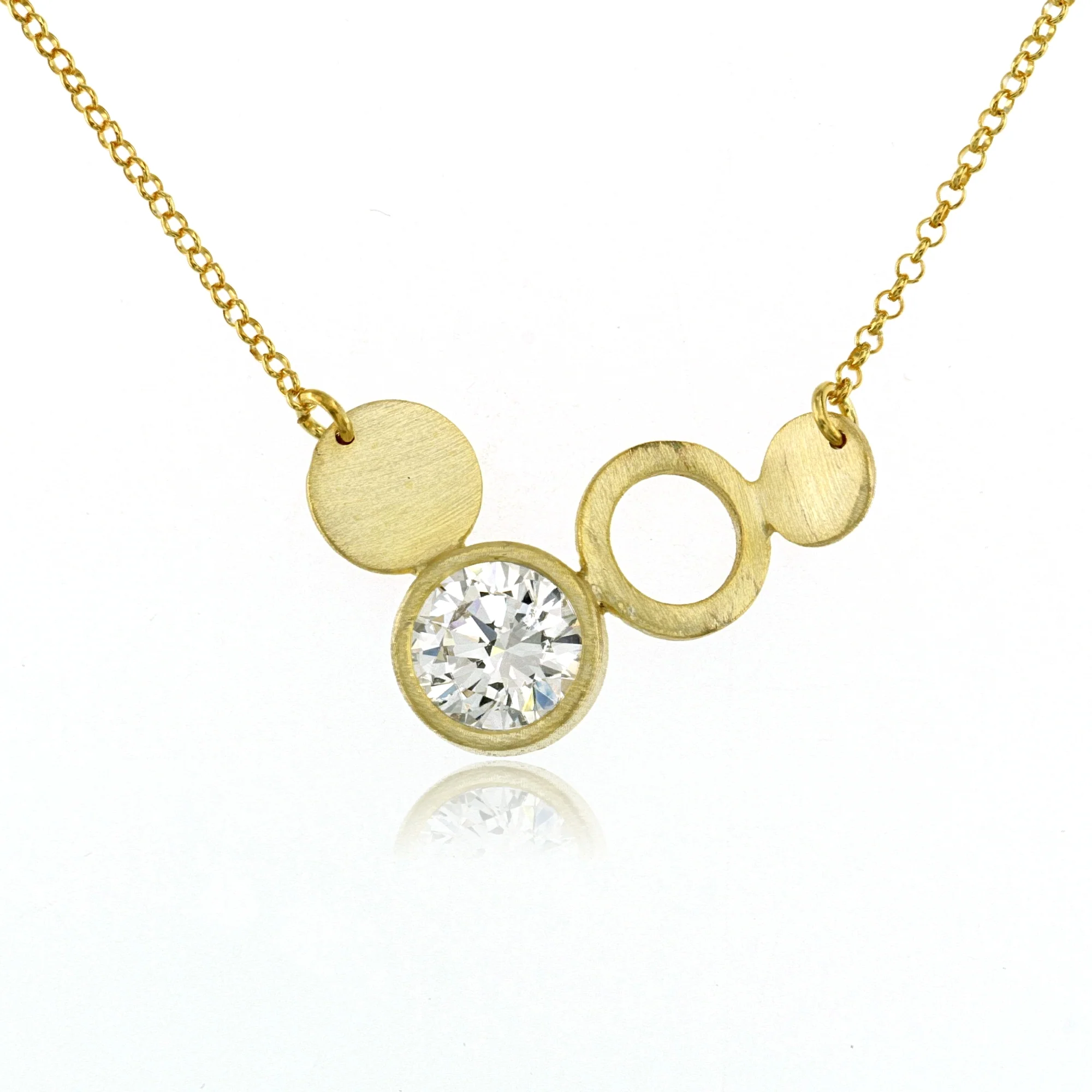 NECKLACE SILVER 24k GOLD-VERMEIL”CIRCLES” 3 CIRCLES AND BEZEL SET 8mm ROUND CLEAR CZ PENDANT, SILVER GOLD-VERMEIL CHAIN, TOTAL 17.5″