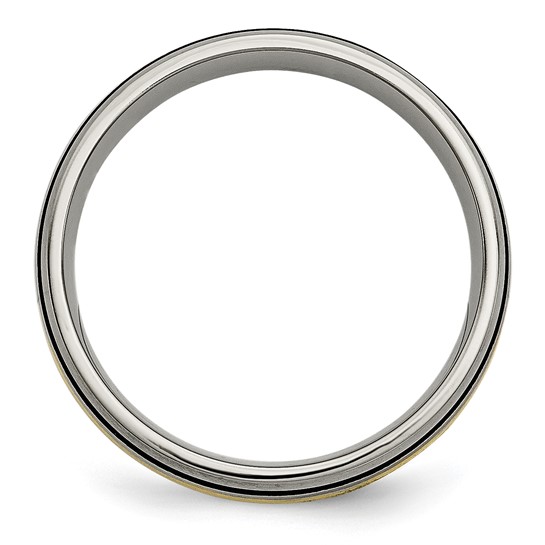 TITANIUM ANTIQUED AND BRUSHED WITH 14K GOLD INLAY GROOVED BAND