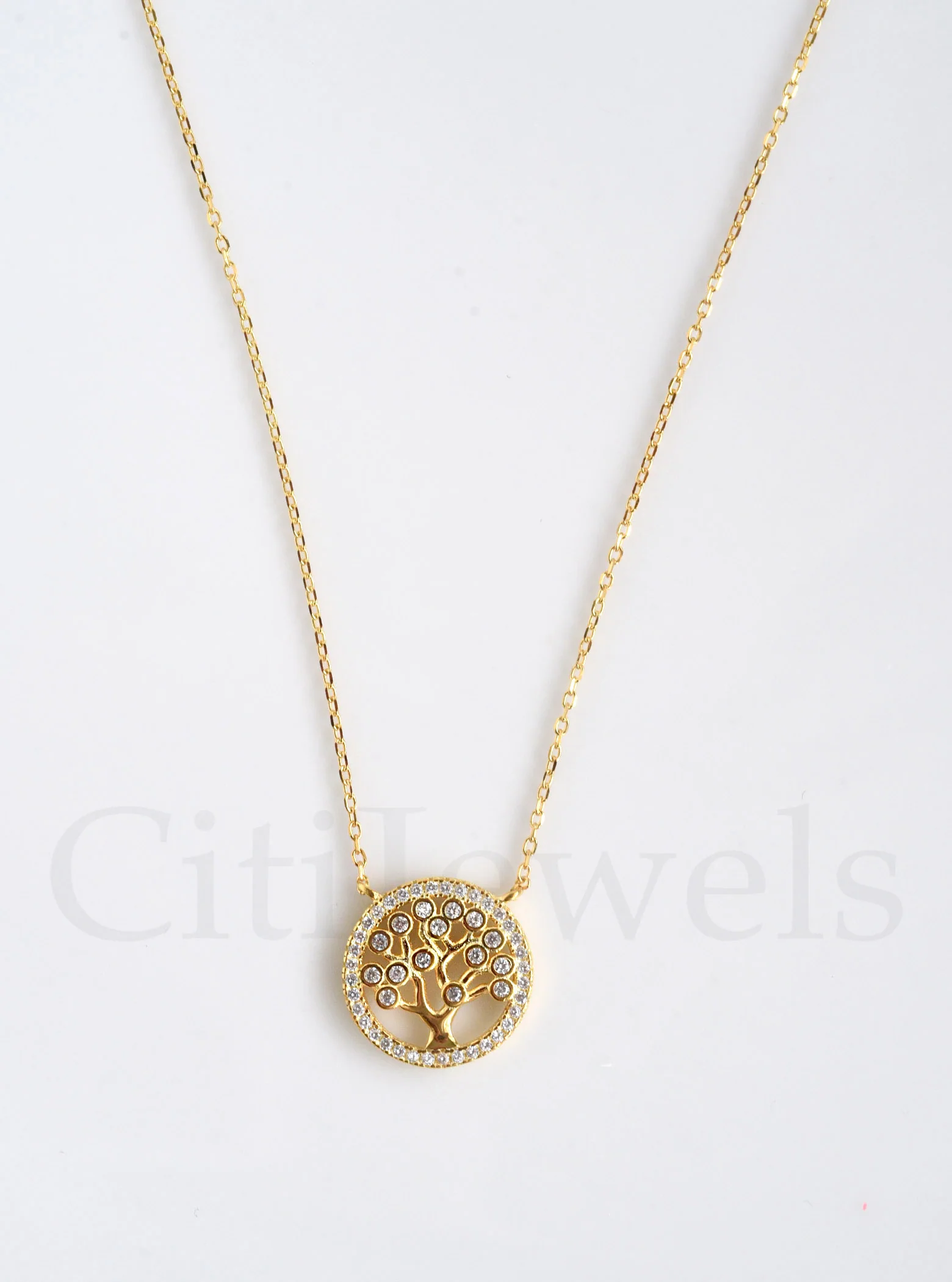 Sterling Silver or 14K Vermeil Tree of Life necklace with CZ’s is 16″ with an additional 2″ extension chain so can fit up to 18″