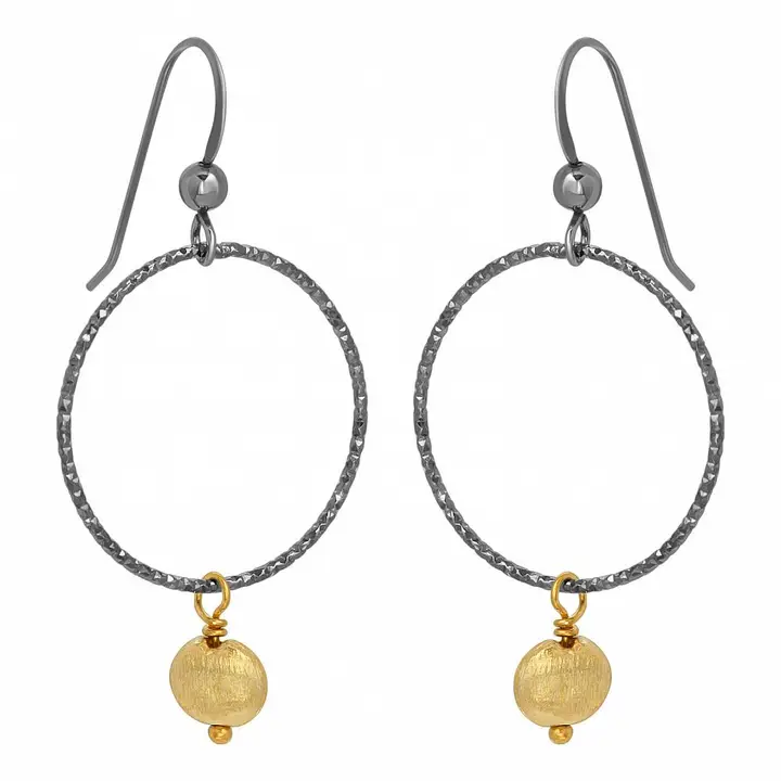 These trendy and classic look of two-tone oxidized sterling silver diamond cut hoop with vermeil gold drop is perfect for every occasion.