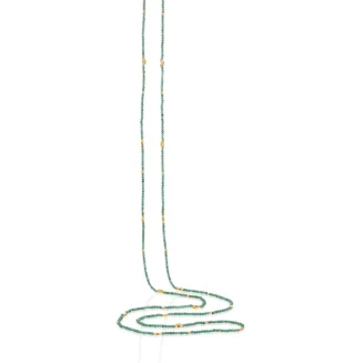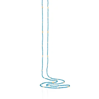 Small sparkly blue Apatite on long silk cord with playful gold Vermeil half moon and tiny gold filled beads in between. Wear this best seller long or double or layer with other pieces. $189.00 Other colors available 42-44 inch adjustable