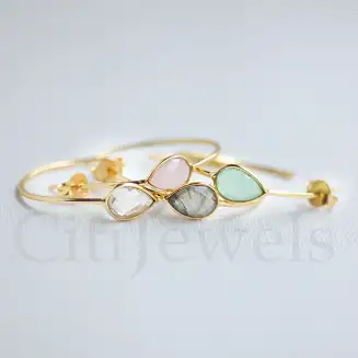 These Waterfall Earrings are made of 14K Gold Filled, Light and easy to wear and beautiful stones of smoky quartz, rainbow moonstone and prehnite, measures 2″ in length and beautiful for Fall!!