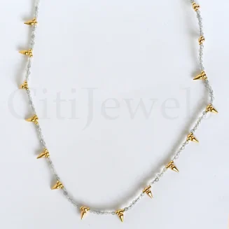 15″+2 inch Minimalist Natural Gemstones Beaded Spike Necklace available in BLACK SPINEL, AMAZONITE,NATURAL MULTICOLOR SAAPHIRES,TOURMALINE,PYRITE,LAPIS,AMETHYST,APATITE,HEMATITE, AND BLUE AQUAMARINE