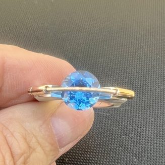 Sterling Silver and 14K Gold Tension set ring holds a 9mm Genuine London Blue Topaz by award winning designer Tomasz Plodowski. Silver has a beautiful mosaic matte finish and signed by the designer on the base of the ring.