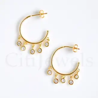 Sterling Silver Or Yellow Gold Vermeil Multiple CZ Dangling Hoop Earring 20MM